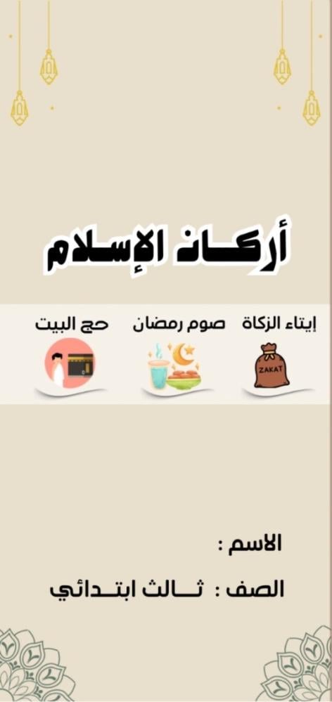 مطوية إسلامية ثالث ( اركان الإسلام ) الترم الثاني